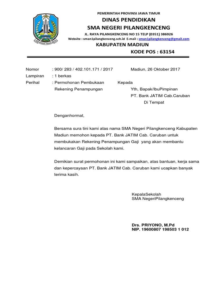 Surat permohonan pergantian kepala sekolah untuk bank jatim. We did not find results for: Maybe you would like to learn more about one of these? Check spelling or type a new query.
