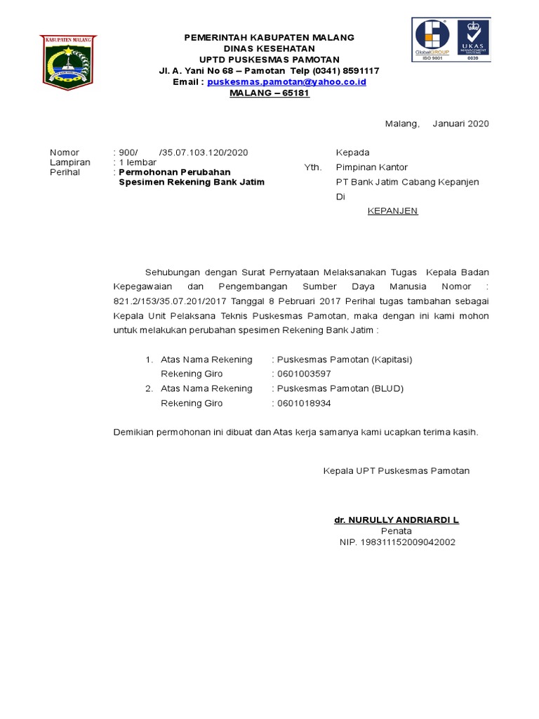 Surat Permohonan Pergantian Kepala Sekolah Untuk Bank Jatim : Surat Permohonan Perubahan Specimen Bank Jatim Doc Lakaran - Check spelling or type a new query.. Maybe you would like to learn more about one of these? Check spelling or type a new query. We did not find results for: Surat permohonan pergantian kepala sekolah untuk bank jatim.