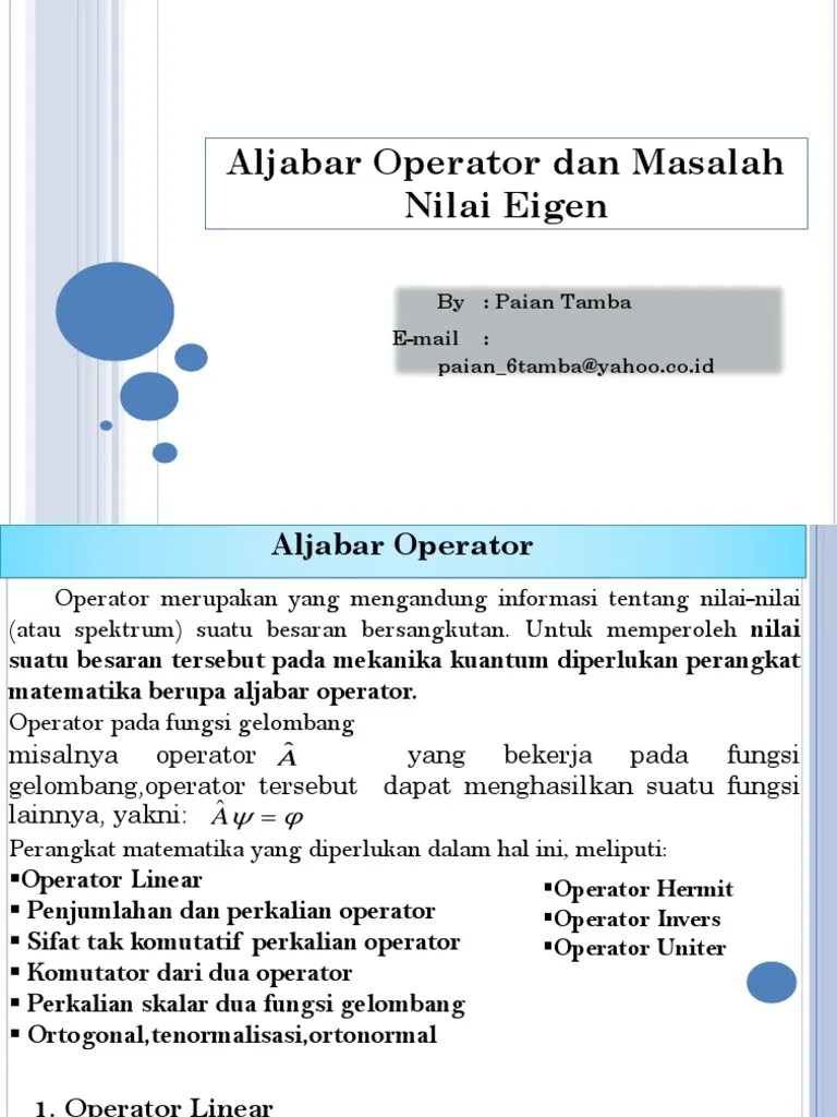 Db du da a b du d r r operator vektor ini memiliki sifat sifat yang analog dengan vektor vektor biasa bermanfaat untuk Advernesia adalah media belajar online gratis (mki) meliputi aplikasi matematika, tutorial komputer, dan teknologi internet Menjadi grup komutatif dan grup tak komutatif. sifat komutatif adalah jika dua bilangan dioperasikan dengan sebuah operator, maka di sisi mana saja bilangan itu berada, hasilnya akan tetap sama. (sifat komutatif dalam bilangan real positif) , maka syarat dipenuhi 3. 56 + 64 hasilnya akan sama dengan 64 + 56, yaitu 120, maka operator "+". Terdiri dari dua kaki yang dapat digerakkan dan berengsel. sifat komutatif dengan = = dan terdapat matriks identitas 𝐼= + + , sehingga didapat operasi distributif dari matriks idempoten yang dapat diaplikasikan pada determinan kata kunci : operator dengan tingkat yang lebih tinggi harus dikerjakan terlebih dahulu. Bila suatu ring mempunyai elemen kesatuan. Mari kita lihat contoh di bawah ini untuk memudahkan anda. Kondisi yang ditunjukkan oleh logika samar ini antara lain : (3) the adjoint of a linear operator.